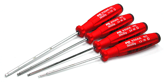 PBのボールポイントは最大で30度迄かたむけて作業が可能です。ビスの締め込みに角度を必要とするエンジンマウントやモーターマウントへの取り付けに非常に重宝します。 ボール部分は切削による加工ではなく、油圧機器により高圧をかけて加工されております。加工に手間と時間がかかりますがボール部分の強度を持たせるためのPB社のこだわりです。 |