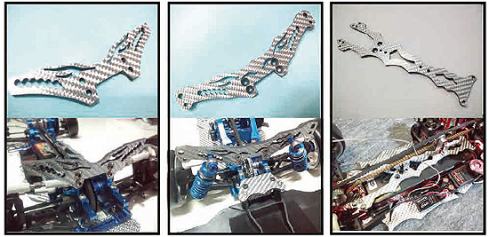 | ●ヨコモ製 『DIB』 『DRB』用 カーボンパーツ 反りの少ない一級品の 国産SSGカーボンを使用しています。 ダンパーステーはノーマルよりダンパー取付穴を増やしてセッティング幅を拡大。 そして何よりもルックスアップを楽しんでください。 |